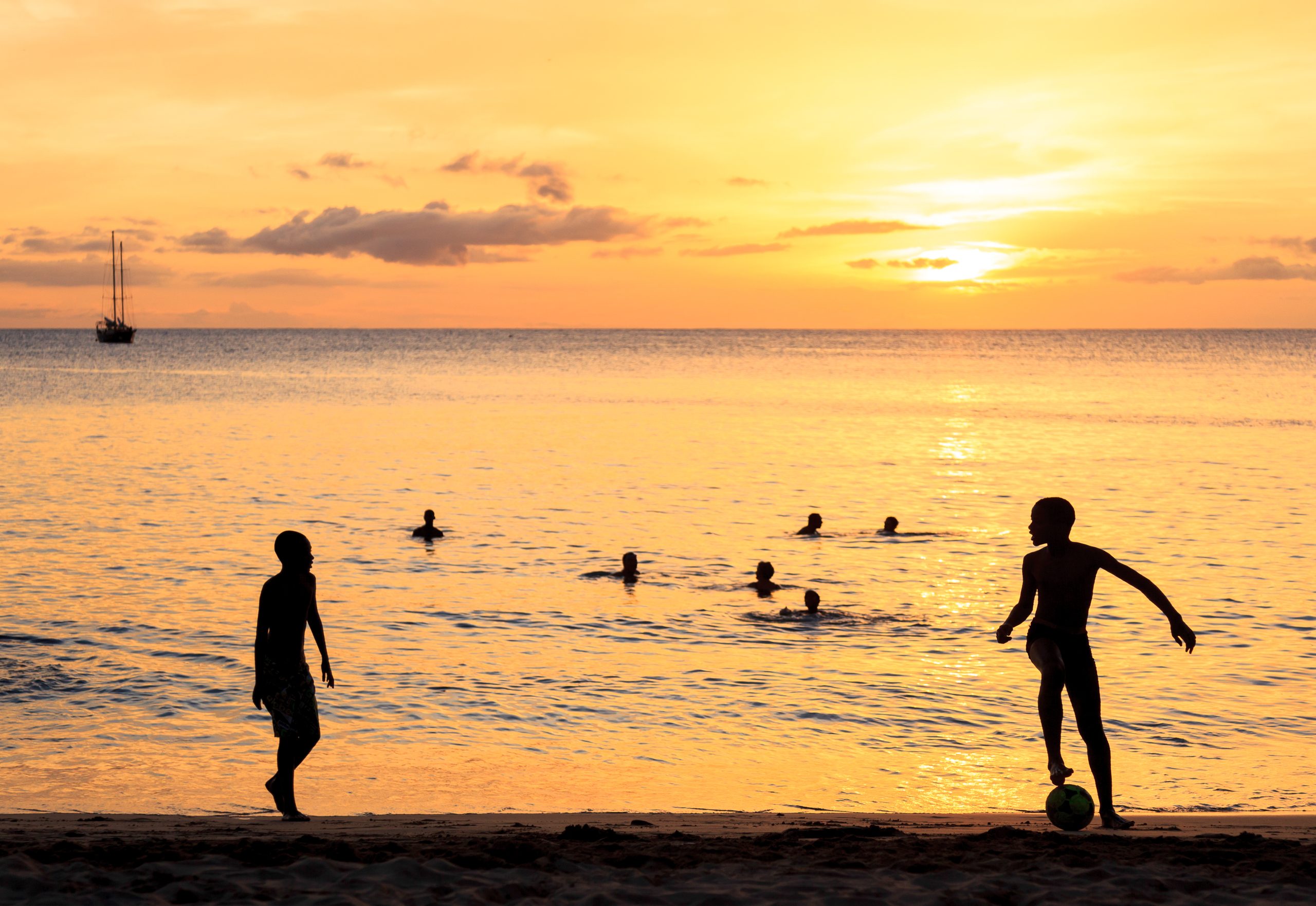 Children playing football at Tarrafal beach on Santiago island, Cabo Verde. Image © Samuel Borges via Shutterstock.