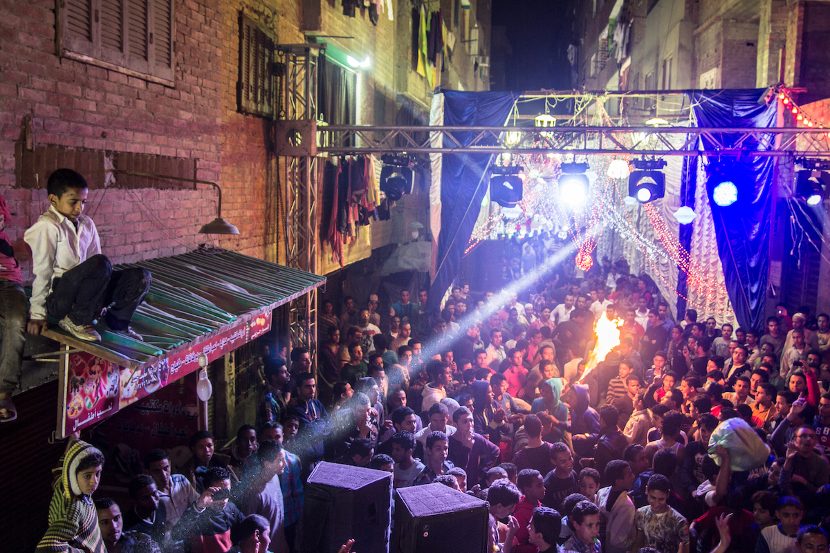 During a Mahragan, A DJ on computer or a mixer, and on occasion, electronic keyboard, provides a heavily electronic musical soundtrack. Image credit Mosaab Elshamy.