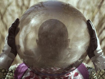 Both Isaac Kalambata and Bwanga “Benny Blow” Kapumpa reckon with the threshold between tangible and unseen in Zambian traditional beliefs. Practicing traditional healing meant being outcast due to legal and educational interruptions by colonial and religious ideologies. “Benny Blow” modernizes the traditional healer or Ng’aka as “Dr. Bwanga,” who offers advice via a telephone booth. His take on digital divinity and relationship to the “algorithm” offers a futuristic imagination of how to cure 21st-century ailments. Doctor Bwanga’s space reads like a confession booth with a thatched roof and transparent window. But he’s not there. Maybe an algorithm, maybe a fox, maybe a witch.