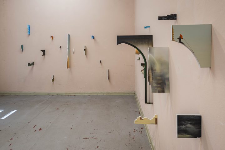 This tension between erasure and presence is held tightly in Salik Ansari’s Altar of Absences, which focuses on demolition as state violence. He doesn’t show victims or devastation, but instead paints the machinery of destruction on jagged forms resembling shrapnel. These works jut out like wreckage archives. The aerial image of Gaza, filmed during Jordan’s food-aid drop in August 2025, whispers in the same breath.