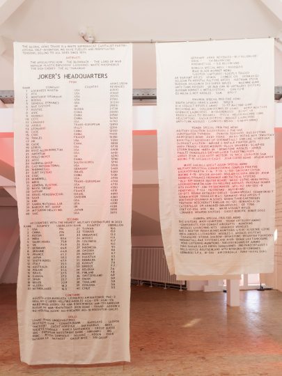 Grupa Spomenik insists genocide is fully speakable but critiques how contemporary forensic science quantifies victims into depersonalized “identified missing persons” devoid of political agency. The Biennale’s cry crescendos with Sawangwongse Yawnghwe’s red-tinted Joker’s Headquarters, which presents evidence quantifying weapons of mass destruction, exposing militaries and nations complicit in arms funding genocides.