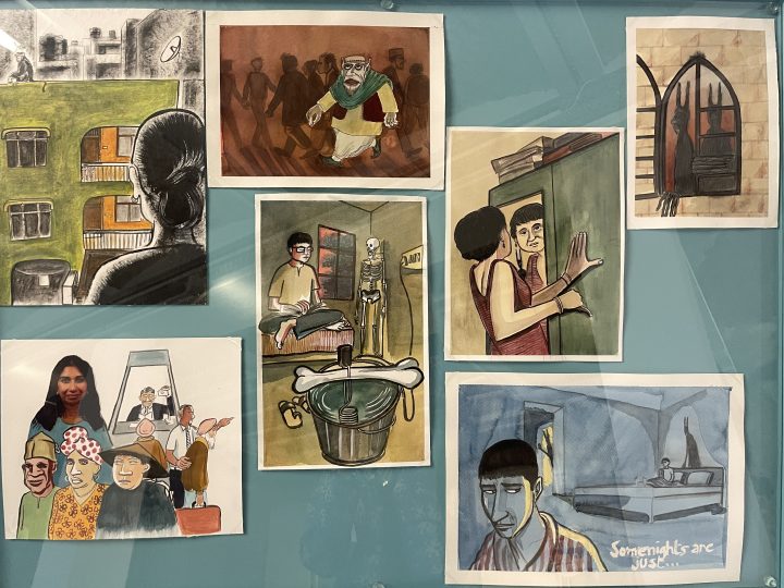 Djinns are invisible beings that live among us. They see us, but we cannot see them. They exist in our homes, commutes, cities, and streets. The Djinn in Sarnath’s comic-book style story is a police informer, because after all, “the best way to control a native is by using another.” In the context of the biennale, Sarnath’s character of the Djinn takes shape as the fugitive, the migrant, the deviant, the fox.