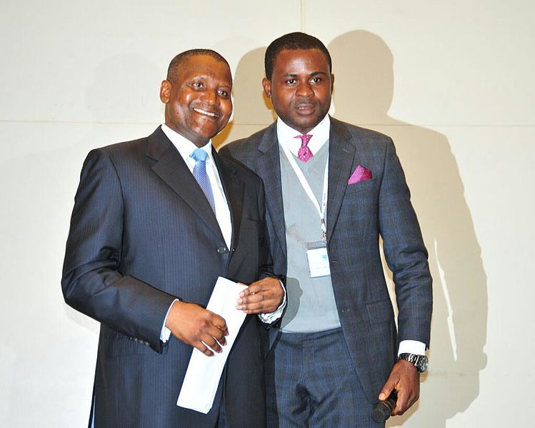 Aliko Dangote, left, the richest man in Africa. at a summit in Nigeria, 2015 (Image via Wikimedia Commons).