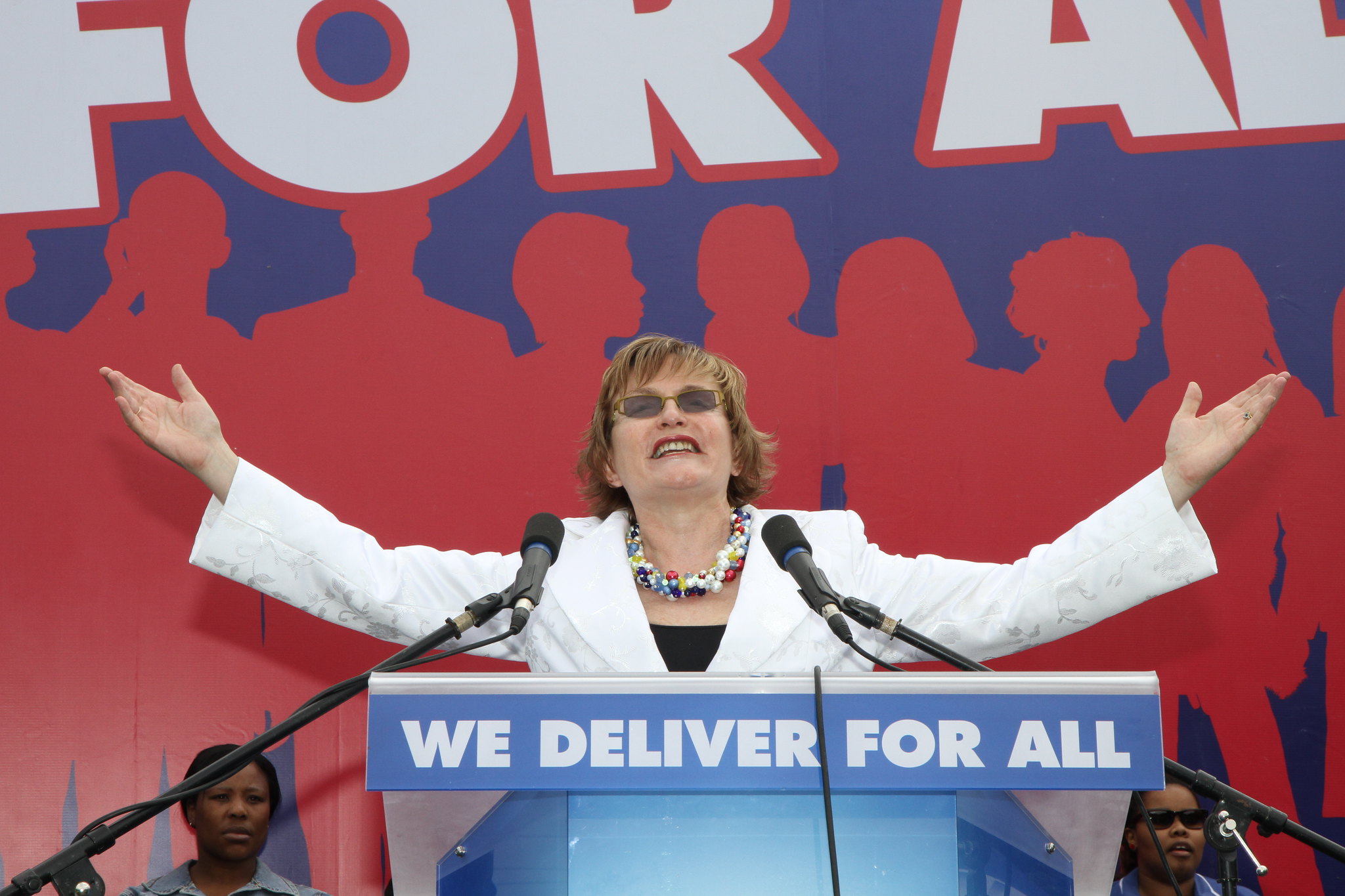 Helen Zille, at a Freedom Day Rally in Mamelodi, Tshwane. Image via Democratic Alliance on Flickr CC BY-SA 2.0.