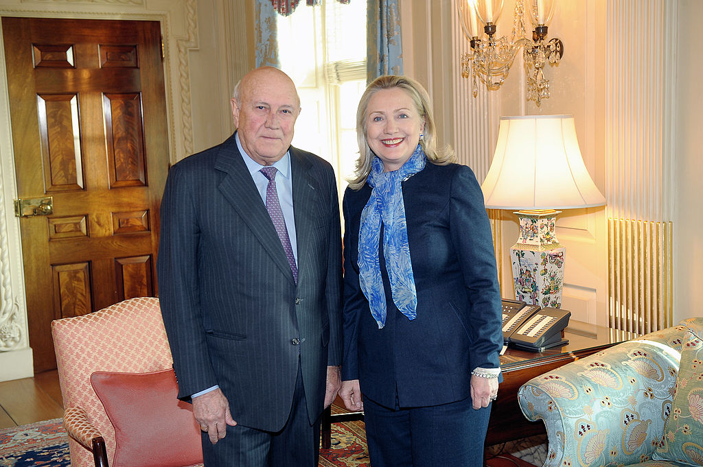 Hillary Clinton and South Africa's last apartheid president, FW de Klerk in 2012 (Wiki Commons).