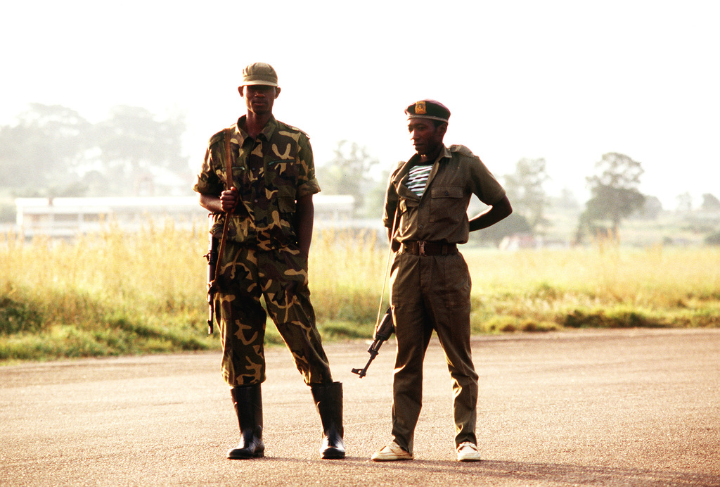 Two soldiers from the 1st Division of the Uganda National Resistance Army. Public domain image.