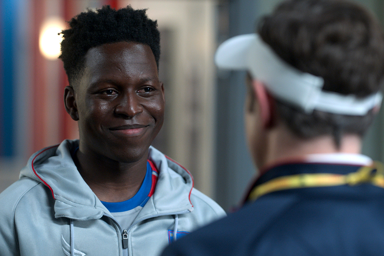 To Edwin’s surprise, following AFC Richmond’s win promoting them back to the Premier League in the season two finale, Sam tells Edwin that he is going to stay with Richmond: “I don’t believe my time here at Richmond is over, and for that reason I have to stay. I hope you can understand.” Edwin’s expression sinks, and in a fit of rage, calls Sam a “Nigerian motherfucker” and “Yoruba trash,” and vows to “dedicate my life to destroying you … you will never play on the Nigerian national team.” Sam takes the high road, and simply responds: “OK,” with a smirk. As Edwin exits the Richmond locker room, he continues to hurl ethnic slurs and threats of violence at Sam in an over-the-top tantrum.