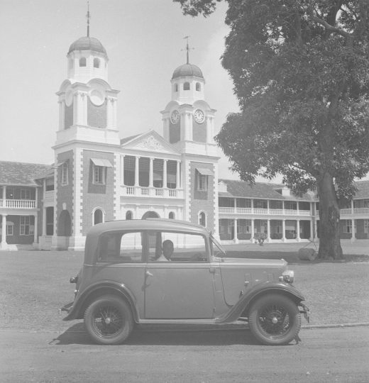 A Ford Sedan parked on the grounds of the Colonial Secretariat/E. H. Duckworth/Northwestern University, Illinois.