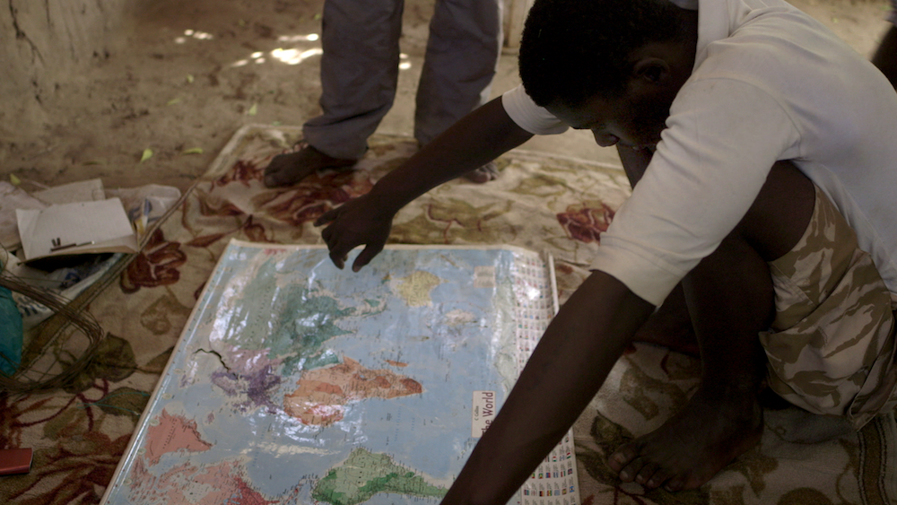 When we are told that Khadijo has disappeared to Europe and is living in a detention center in Geneva, it happens quite suddenly without any details of her larger life and why she would, even with her all-consuming dreams of Canada and a possible arranged marriage, leave her home so abruptly. Likewise, when Claude (who had been speaking with friends in what seems like a staged conversation about the different routes to get to Europe) hears about Khadijo’s success, the film shows him dramatically asserting how he will get there, he swears, with his own two feet. Since there is not much texture and layering provided to show the lives of these young protagonists, the breadth and depth of their lives beyond their need for exile from this place, the narrated images of them arranged here do not concretely uphold the story told by the filmmaker.