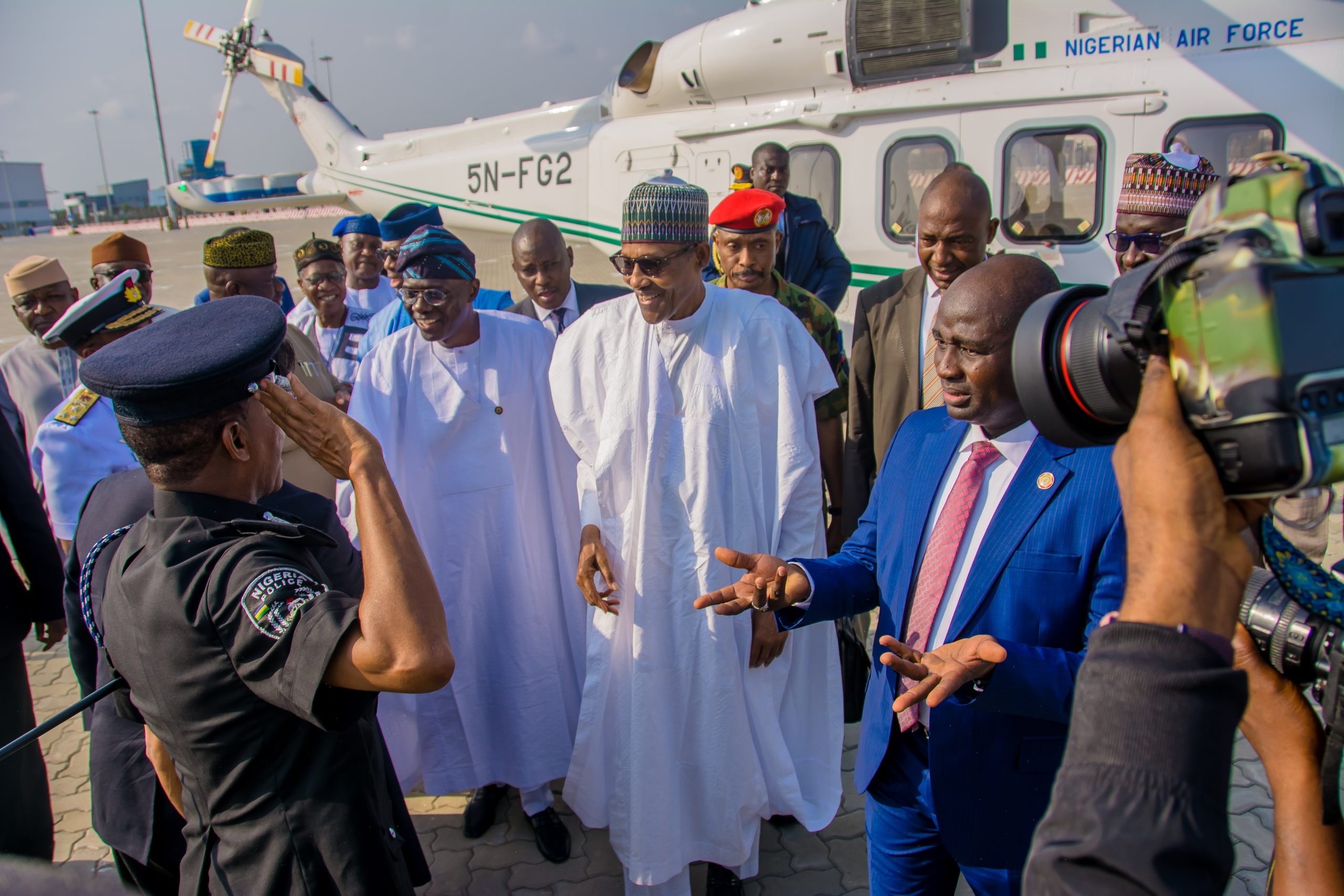 President Muhammadu Buhari during a visit to the Lekki Deep Seaport. Lagos, Nigeria, January 21, 2023. © Oluwafemi Dawodu via Shutterstock.com