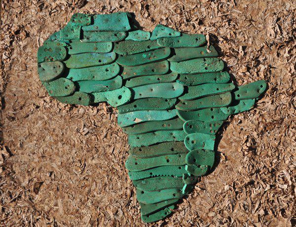 Armando Tanzini's collage of green flip-flops – in the shape of the African continent.