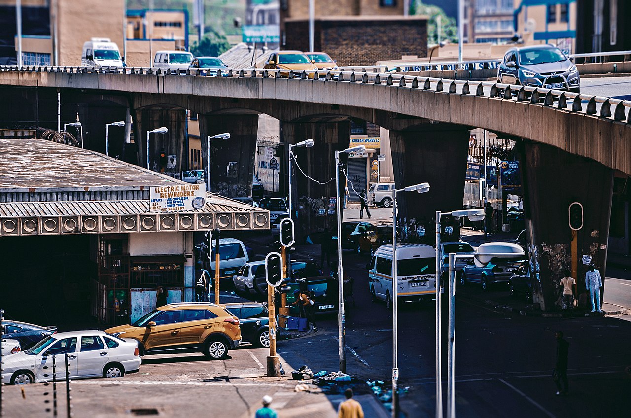Hustle and Bustle underneath the Maboneng Bridge. Image credit Shade Schutze Photography via Wikimedia Commons CC BY-SA 4.0 Deed.