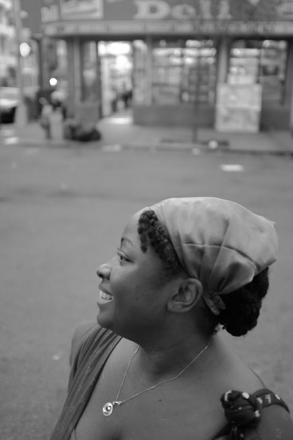 This is Jenesis Scott. It is a photo I feel says so much about her. For the fact that her name is Genesis, I would always joke with her, call her Exodus. She used to come around the Bronx Documentary Center (BDC). She is a good friend of mine, the neighborhood and the BDC. When I made this photograph I had no idea what it would turn out to be, but she was caught in the moment and what I really liked was just the way it is composed: the deli at the back; her expression, I like the fact that her chest is there but you are not really seeing it. Because I feel like at times photographing women can be quite difficult. Because usually photographers tend to want to show something sexual. And for me I am okay with the idea of portraying women as just themselves, and or without inciting any kind of sexual innuendos. Just looking at a picture of a young lady and just looking at it for the sake of just the image itself. Which is why I personally like this image. There is a bit of a timelessness to it too, with the necklace and the scarf. But if you ask her I bet she will say, “Oh I didn’t have any makeup and didn’t put myself together” but to me it is pure, almost like a state of mind. The little knot on the shoulder I like as well. It could be a wrapper, it could be an African cloth. I think about West Africa, just seeing that little knot there, because I did that a lot. As kids we would put money in the African wax fabric and tie it. So these recognitions even if you don’t know how they seem to appear, do find a way of coming into the images of one’s practice.